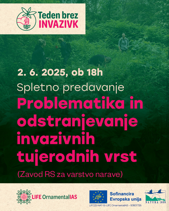 Pridružite se nam na poučnem spletnem predavanju, kjer bomo predstavili konkretne primere, izzive in rešitve v boju proti invazivnim vrstam, ki ogrožajo našo biotsko raznovrstnost.